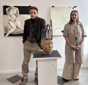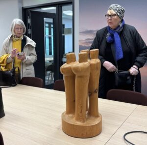 Sirviön erittäin viehättävään ateljeeseen ja hänen siellä työskentelyynsä tutustumisen jälkeen jatkettiin matkaa – Sirviö mukaan liittyneenä – HUS:n Hyvinkään sairaalaan, jossa on hänen teoksiaan esillä.