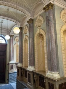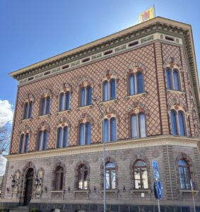 Päivän aluksi vierailtiin Saskian teosgalleriaan tilaustyönä grafiikanvedoksen Lohdutus (2024) tehneen kuvataiteilija Kaisu Sirviön ateljeetalossa Järvenpäässä. Upean talon on aikoinaan suunnitellut arkkitehti Lars Sonck (1870 – 1956), ja rakennus on alkujaan toiminut kansakouluna.