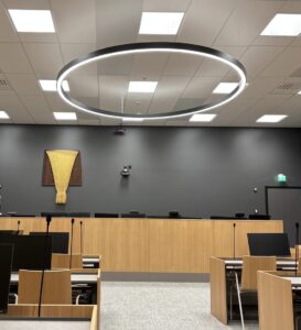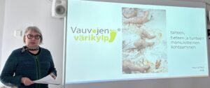 Vierailun aluksi taiteilija Antti Tanttu kertoi Forum Boxin Mediaboxissa esillä olevasta teoksestaan Noli Timere (2022).